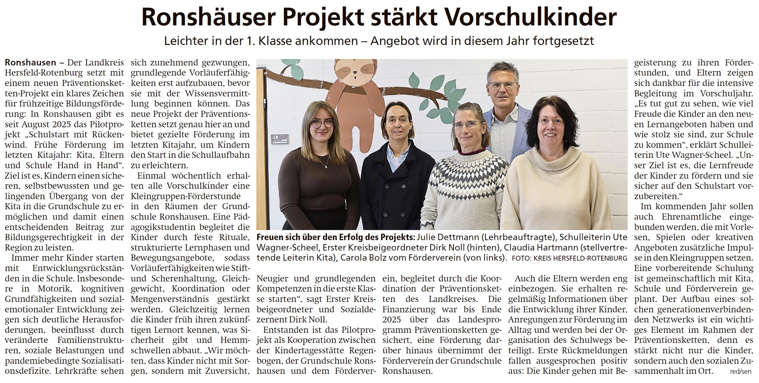 Ronshäuser Projekt stärkt Vorschulkinder (HNA am 13.01.2026)