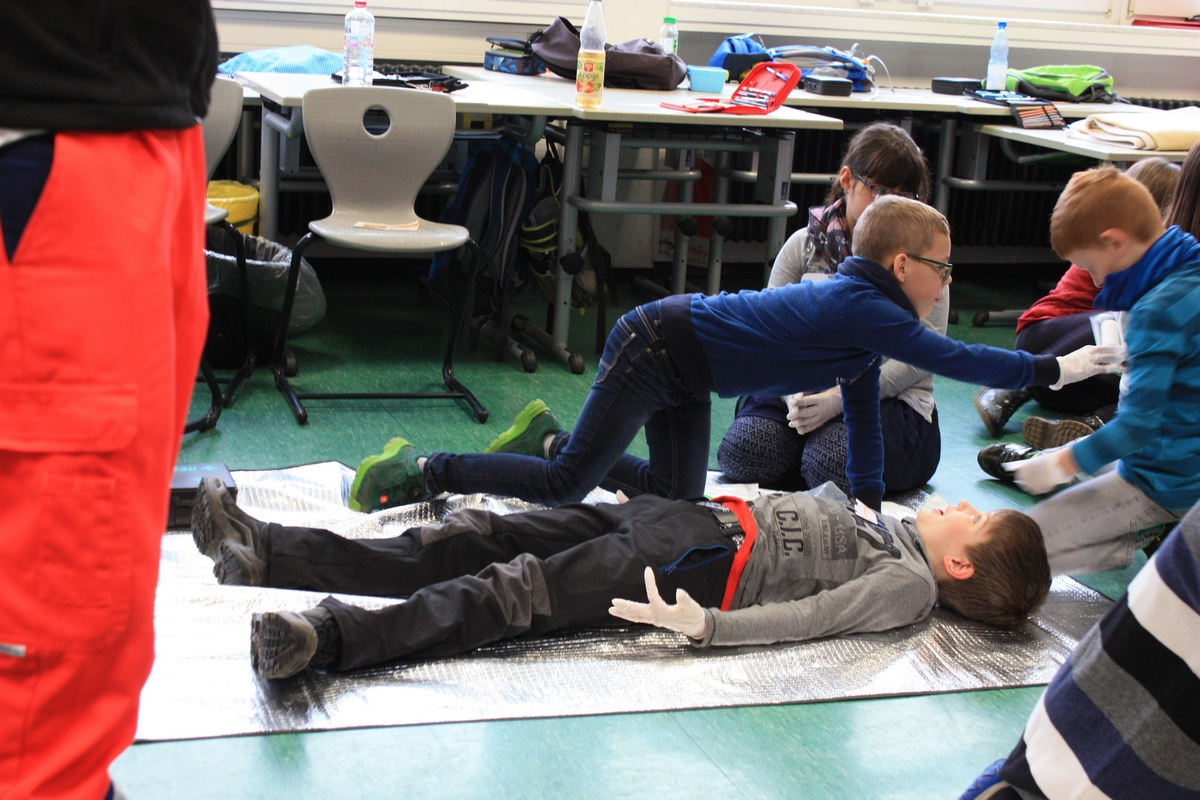 Erste Hilfe Kurs in der Klasse 3 durch das Deutsche Rote Kreuz am 12.03.2018.
